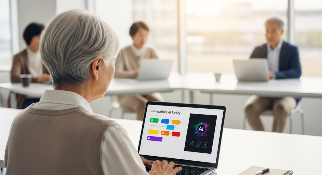 老後に備えてAIリテラシーを身につけ、生成AI活用の基礎講座や資格取得に取り組むシニア世代が増えています。AIリテラシーとは、AI技術の基本的な仕組みを理解し、生成AIなどのツールを適切に活用できる能力のことです。生成AIパスポートやG検定といったAI関連資格は受験資格に年齢制限がなく、オンラインで自宅から受験できるため、老後のリスキリングとして大きな注目を集めています。