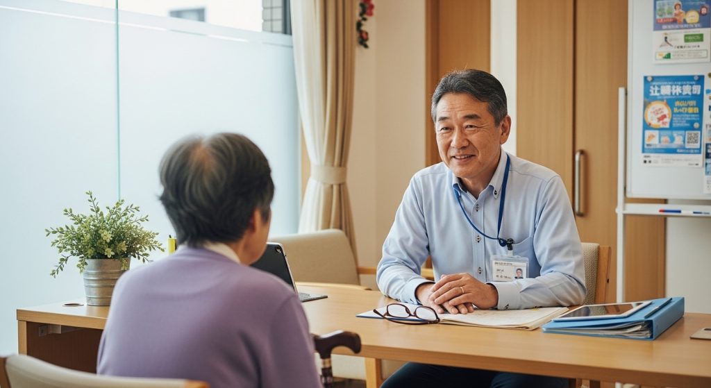 総合相談支援業務では、高齢者やその家族から寄せられるさまざまな相談に対応します。「親の介護が必要になったがどうすればよいかわからない」「一人暮らしの高齢の親が心配」「認知症の症状が出てきたがどこに相談すればよいか」といった相談が日常的に寄せられます。社会福祉士はこうした相談に対して、介護保険制度の説明や申請の支援、適切な福祉サービスへの橋渡し、関係機関との連絡調整などを行います。