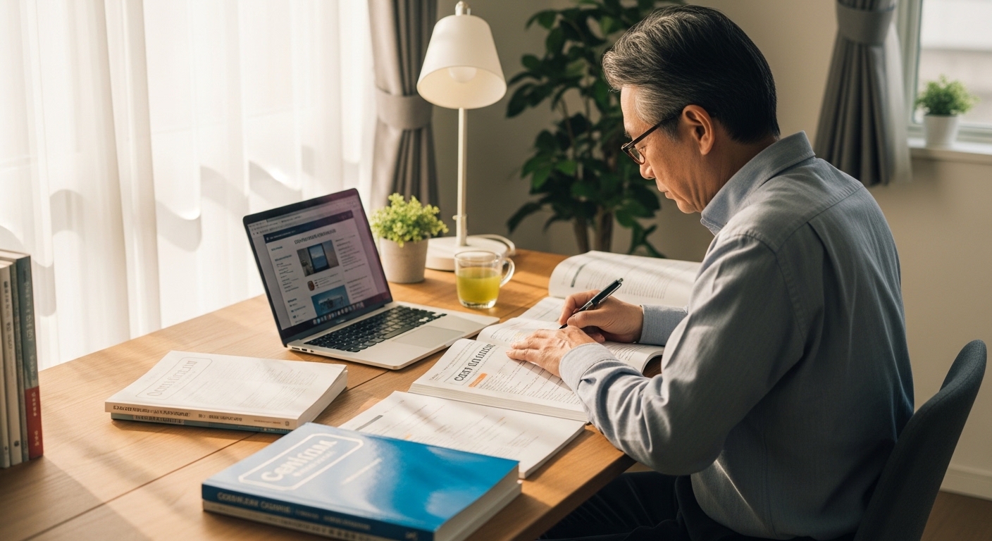 老後に資格を取得する際には、いくつかの重要なポイントがあります。まず取得にかかる時間と難易度です。定年後から勉強を始める場合、合格までに何年もかかる難関資格は現実的ではないことが多いため、できれば1年以内、長くても2年以内で取得できる資格を選ぶのがおすすめです。難関資格に挑戦する場合は、遅くとも55歳頃から準備を始めることが望ましいとされています。