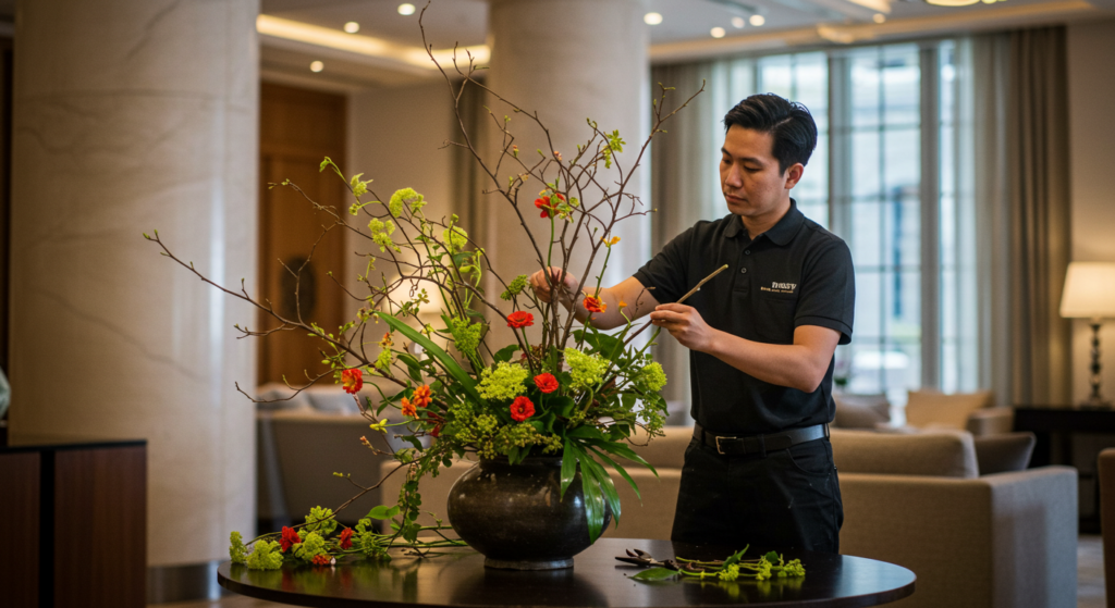 まず、主な就職先として挙げられるのが、園芸関連会社です。これらの企業では、オフィスビルや商業施設、ホテルなどの大規模な室内緑化プロジェクトを手掛けています。園芸装飾技能士は、これらのプロジェクトにおいて中心的な役割を担います。具体的には、クライアントの要望をヒアリングし、空間の特性に合わせた植物の選定や配置を提案する企画段階から、実際の施工、そして施工後の維持管理まで、一連の業務に携わることになります。